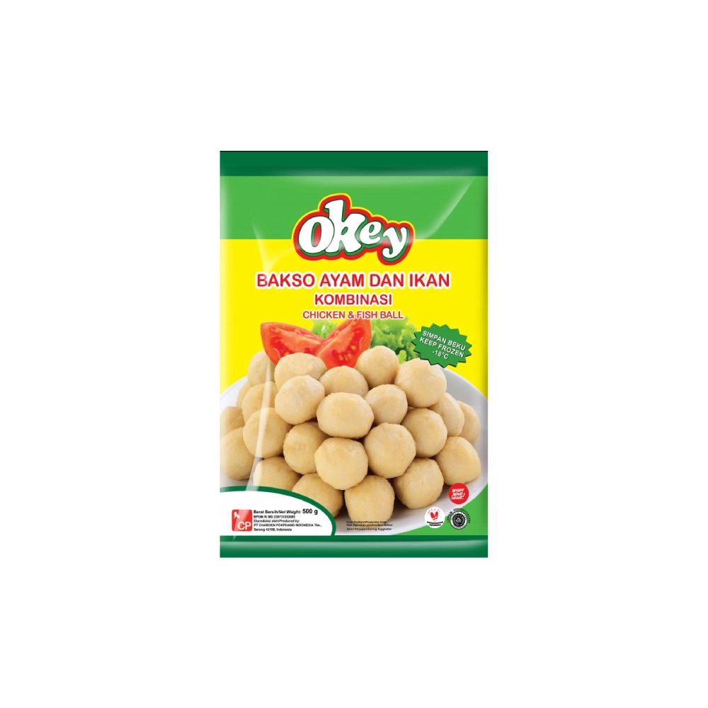 Bakso kombinasi ayam dan ikan dengan rasa gurih dan tekstur kenyal, cocok untuk sup atau goreng.