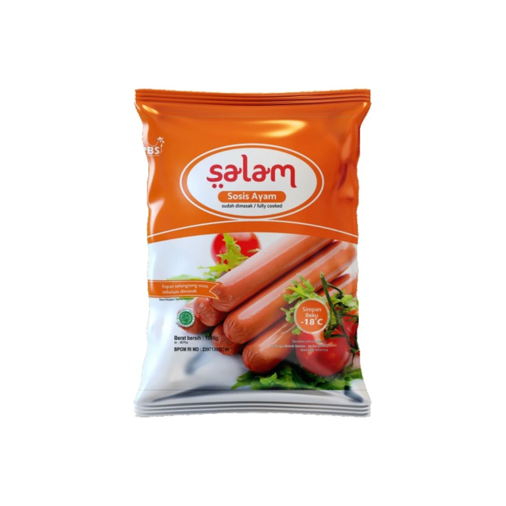 Produk olahan daging ayam berwarna coklat dengan rasa khas ayam, dapat diolah dengan mengupas kulit sosis terlebih dahulu.